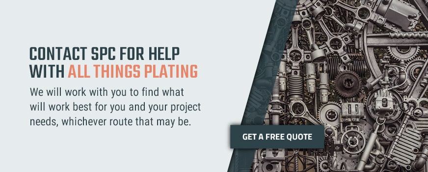 Even if you’re still unsure about the best plating material for your project, SPC can help. When you turn to us for your plating needs, we’ll take a look at your project and help you determine which plating method is best for you. As you’ve seen, there are so many different options, and the material you use heavily depends on your specific product and its intended use.
